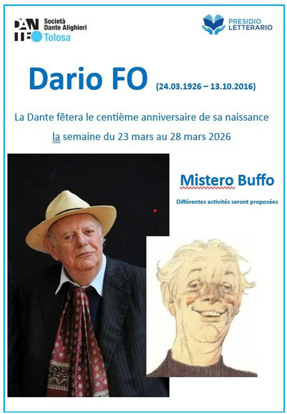 Centième anniversaire de la naissance de Dario Fo, prix Nobel de littérature le 24 mars 2026.