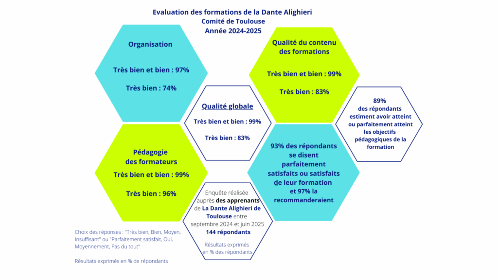 La Dante Alighieri de Toulouse en tant qu’organisme de formation propose des formations en présentiel et/ou en distanciel, dans ses locaux ou en entreprise, en visioconférence, en individuel ou en groupe.